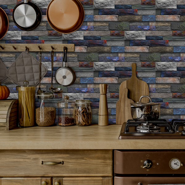 Peel And Stick Wallpaper Retro Stone Brick Self-adhesive Wall Stickers Bathroom Kitchen Back Stickers